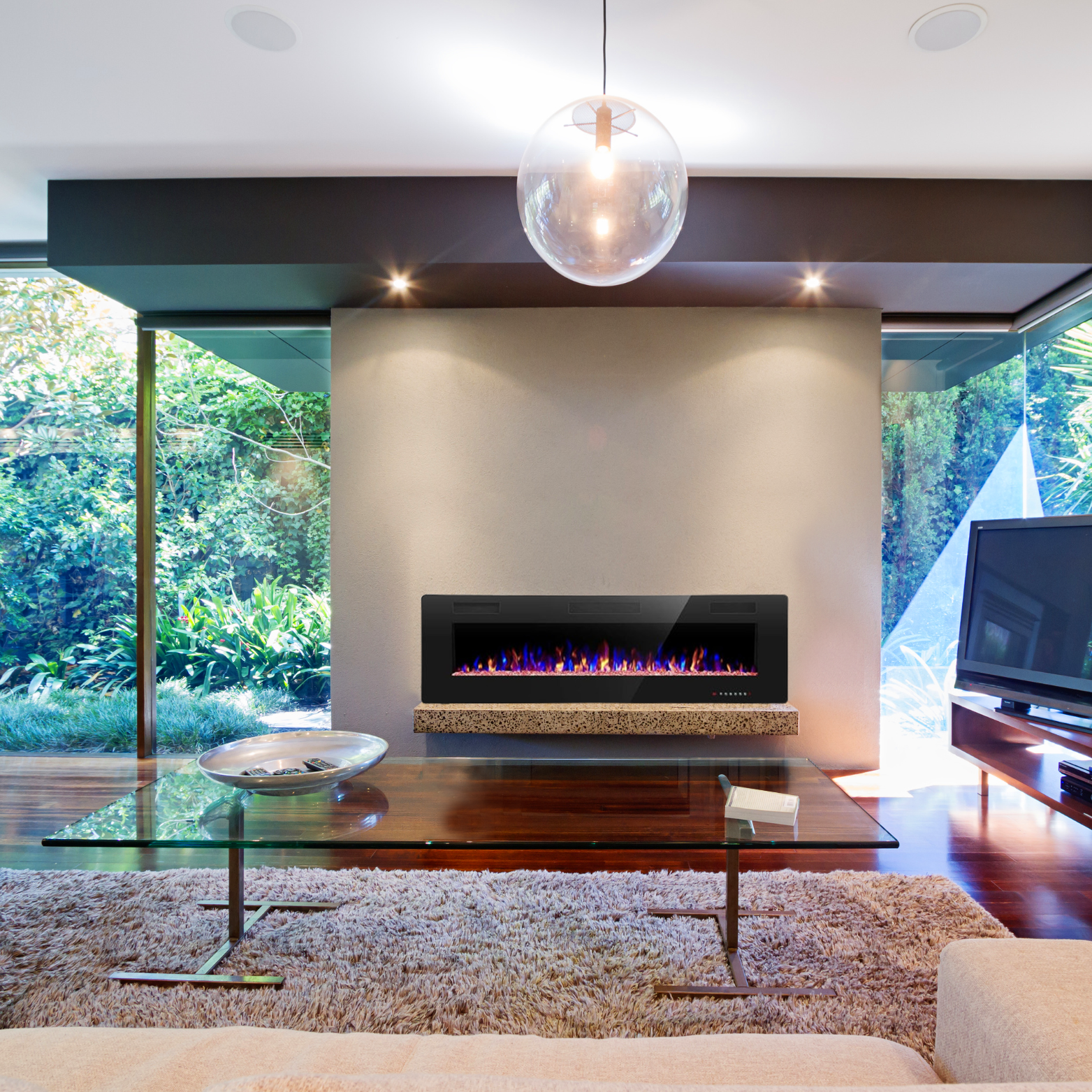 - Attractive and Practical Design: 3.86″D x 68″W x 18.11″H,The thickness of the new style is only 3.86 inches while the old one is 6 inches. And it opearates the same as the old one. Also we redesign the location of main power and power cable, which makes the new fireplace more attractive and practical.